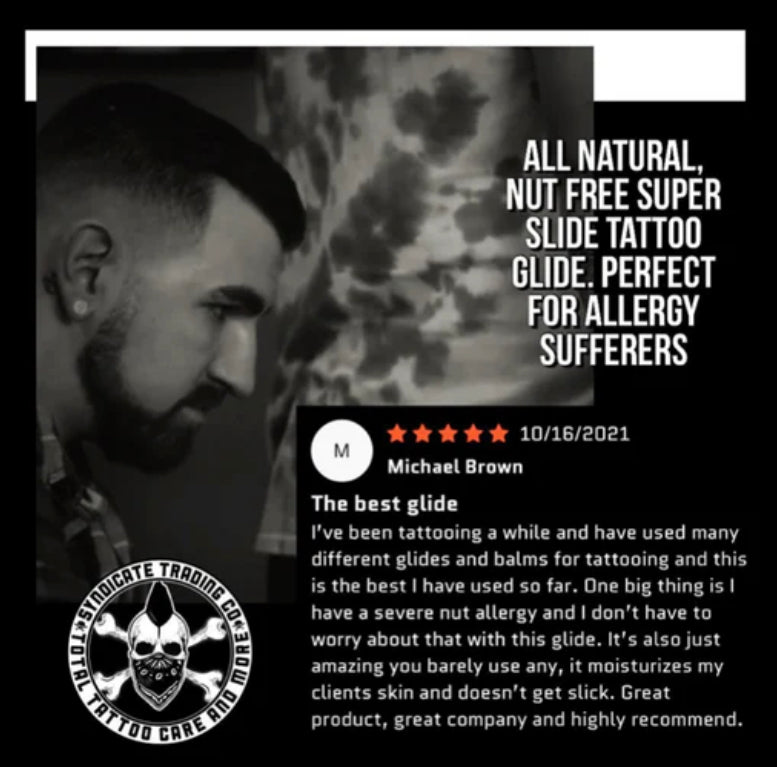 A proper healing tattoo can seriously affect the long term outcome. Heal your tattoo correctly from day one with only the Best. All natural Syndicate Tattoo Care.