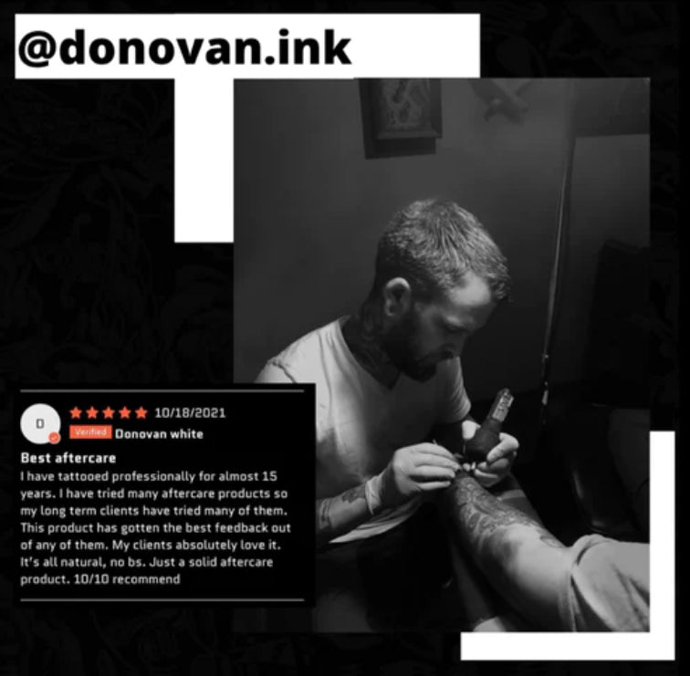 A proper healing tattoo can seriously affect the long term outcome. Heal your tattoo correctly from day one with only the Best. All natural Syndicate Tattoo Care.